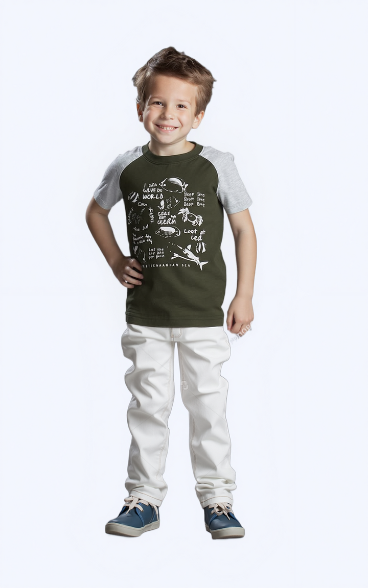 Boy's Gray Melange+Oliver short sleeves t-shirt, Front Print ,Round neckline.