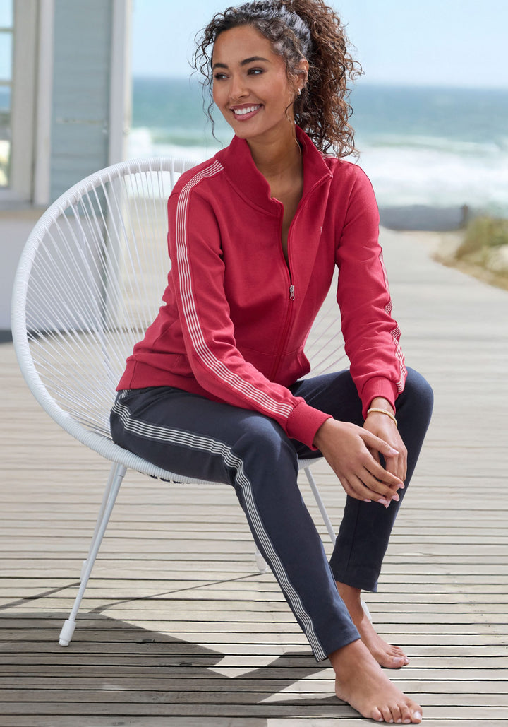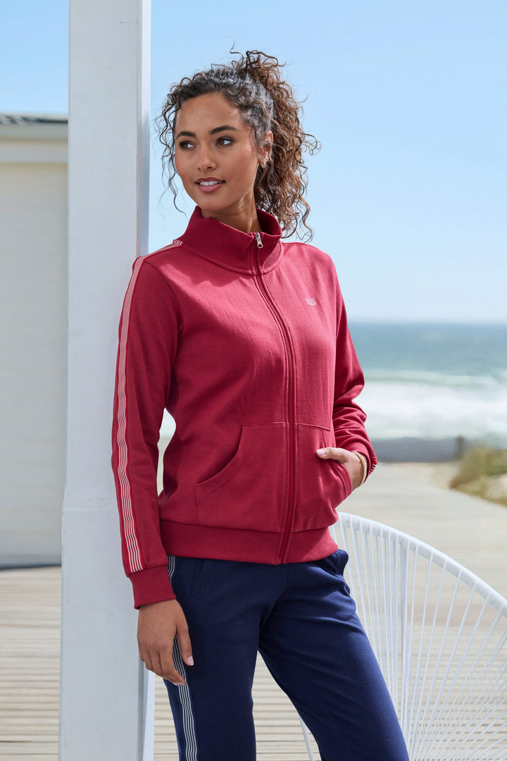Sporty elegance for relaxed moments: This comfortable HIS sweat jacket combines an athletic look with first-class comfort. The sporty stand-up collar gives the design a modern, dynamic appeal and adds a stylish touch. The striped tape on the sleeves adds an authentic sportswear vibe, transforming this basic into a mini design highlight. The wide, soft ribbed cuffs ensure a perfect fit. Ideal loungewear, this jacket offers maximum freedom of movement and cozy warmth for all those relaxed hours. The soft, stretchy interlock fabric feels like a warm hug and makes this HIS sweat jacket something truly special, making it your new favorite companion for cozy days.